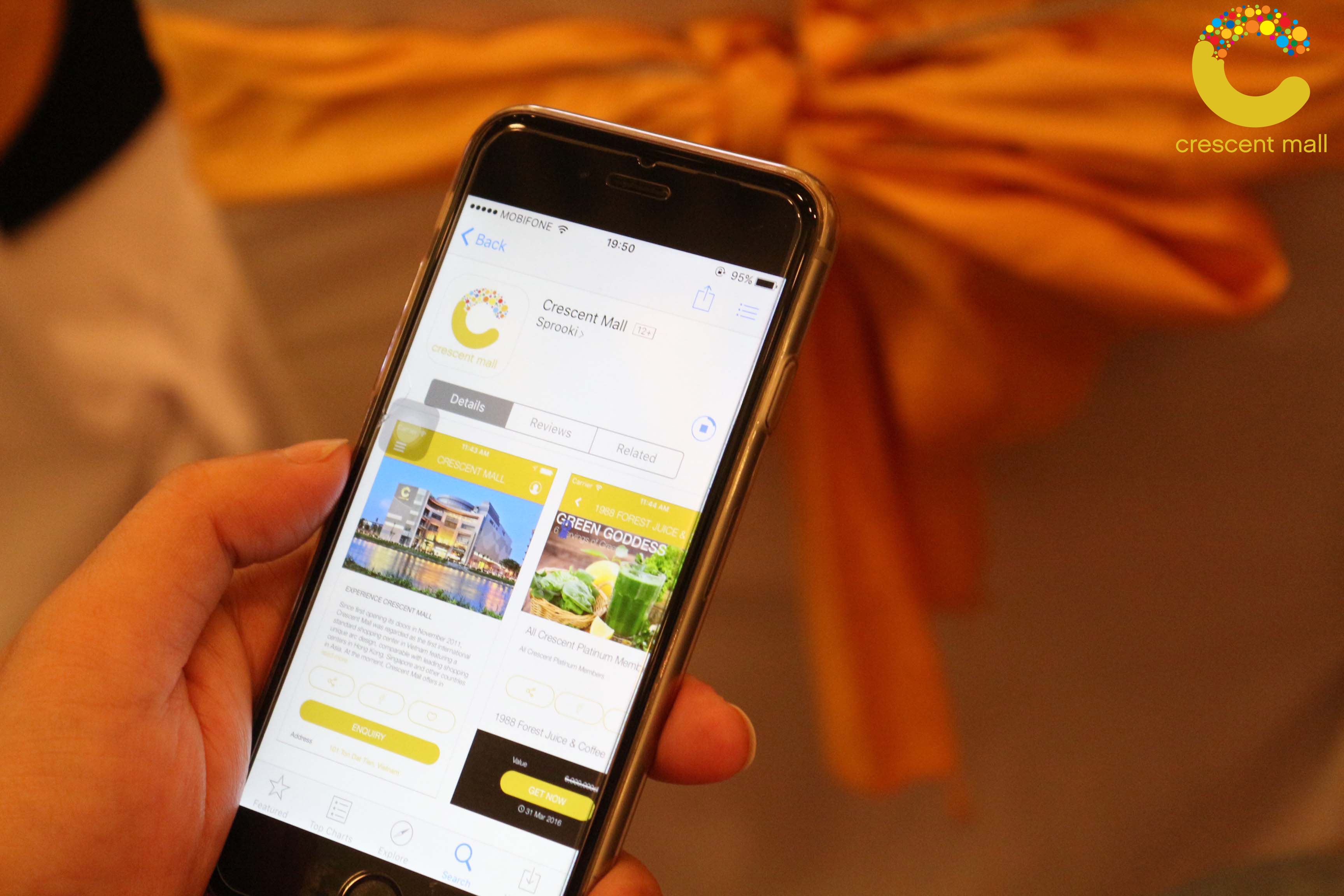 18h cùng ngày, Crescent Mall tổ chức Lễ giới thiệu chính thức ứng dụng di động Crescent Mall nhằm đưa ứng dụng đến gần khách hàng và các đối tác bán lẻ. Crescent Mall là một trong những trung tâm thương mại đầu tiên áp dụng công nghệ tiếp thị dựa trên địa điểm với tên gọi iBeacon. Ứng dụng di động này tương thích trên cả hệ điều hành iOS và Android. Ứng dụng Crescent Mall có nhiều tính năng nổi bật và tiện ích cho khách hàng khi vui chơi mua sắm tại đây: voucher điện tử, lịch sự kiện, danh mục các cửa hàng, bản đồ thông minh, thẻ thành viên điện tử…