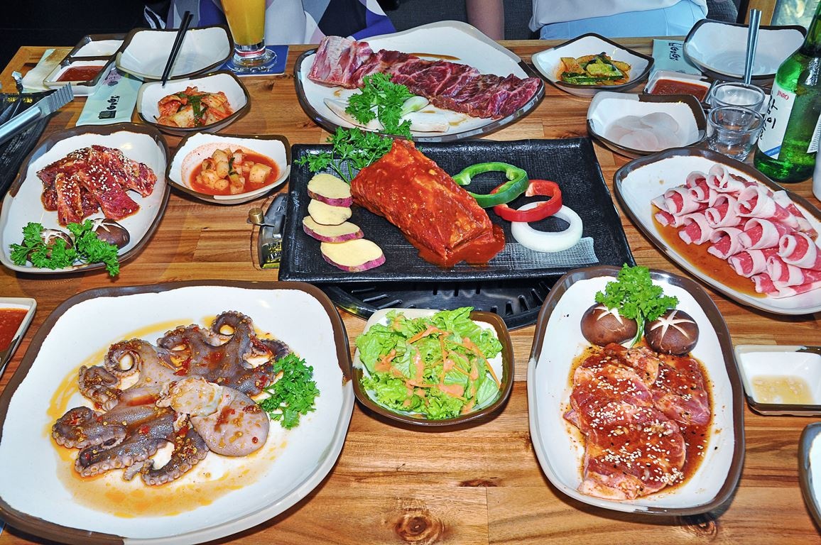Các món thịt nướng chất lượng được nhập khẩu trực tiếp: sườn non bò Mỹ, nạc vai bò Mỹ, dẻ sườn tươi…Những món ăn đặc trưng Hàn Quốc khác cần kể đến là: cơm trộn, mỳ lạnh, canh kim chi và các loại lẩu. |