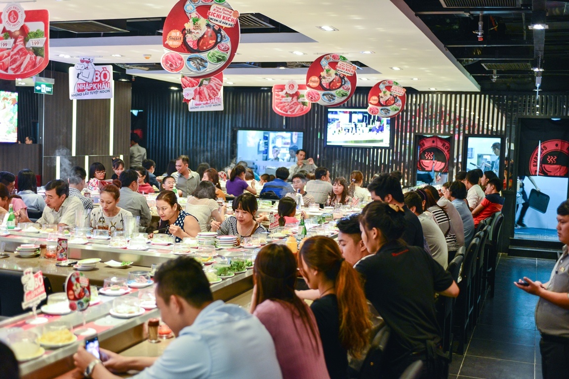 Hệ thống băng chuyền chuyển động không ngừng với hơn 100 món nhúng lẩu gồm các loại thịt, hải sản tươi, các món được chế biến bằng tay, các loại rau xanh và nấm bổ dưỡng tại Kichi Kichi. Trong đó nổi bật và được yêu thích nhất chính là thịt bò nhập khẩu. |