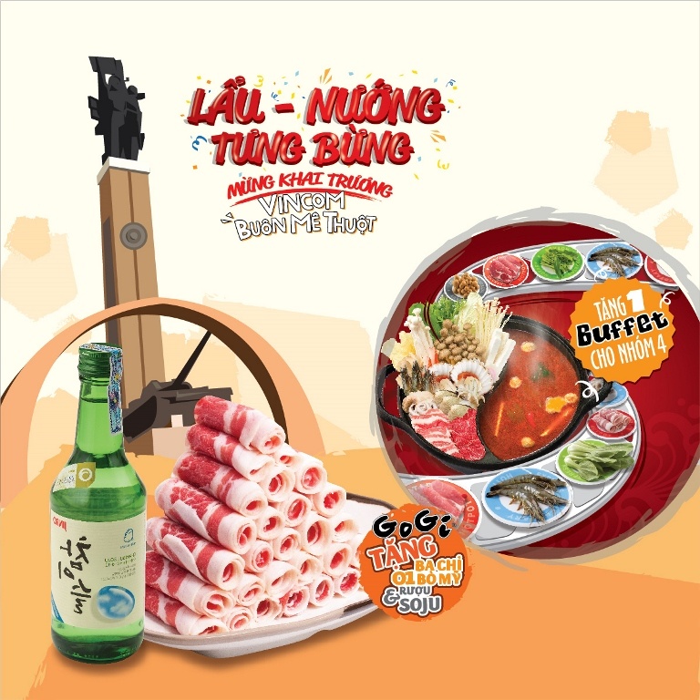 Nhân dịp khai trương, các nhà hàng Kichi Kichi sẽ miễn phí ngay một suất buffet và GoGi House tặng một phần ba chỉ bò Mỹ cuộn cùng rượu Soju Hàn Quốc cho mỗi nhóm 4 khách dùng bữa tại nhà hàng. |