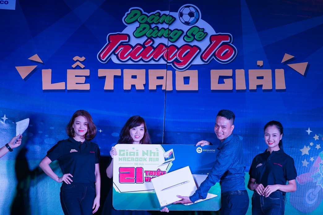 Ngày 12/8, lễ trao giải “Đoán đúng sẽ trúng to” của chuỗi nhà hàng lẩu băng chuyền Kichi-Kichi Hà Nội đã diễn ra sôi động tại nhà hàng Vuvuzela Nguyễn Khánh Toàn. Nằm trong sự kiện Trúng to thường niên của Kichi-Kichi, năm nay chương trình được tổ chức đúng dịp Euro 2016. Để tiếp thêm lửa cho ngày hội bóng đá, đồng thời đem tới cho các khách hàng nhiều niềm vui hơn khi thưởng thức lẩu tại nhà hàng, Kichi-Kichi đã tổ chức cuộc thi “Đoán đúng sẽ trúng to” với cơ chế giải thưởng: một giải nhất dự đoán đội vô địch là một xe Piaggio Vespa; một giải nhì dự đoán vua phá lưới là một Apple Macbook; 2 giải ba dự đoán dự đoán găng tay vàng là 2 Apple Watch.