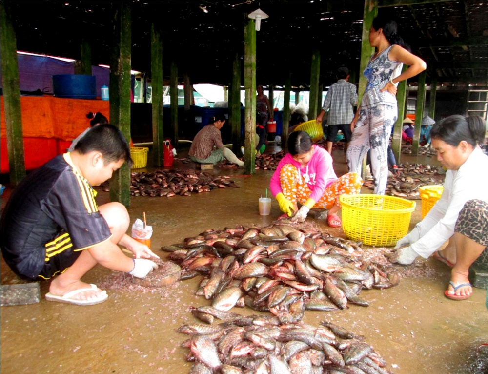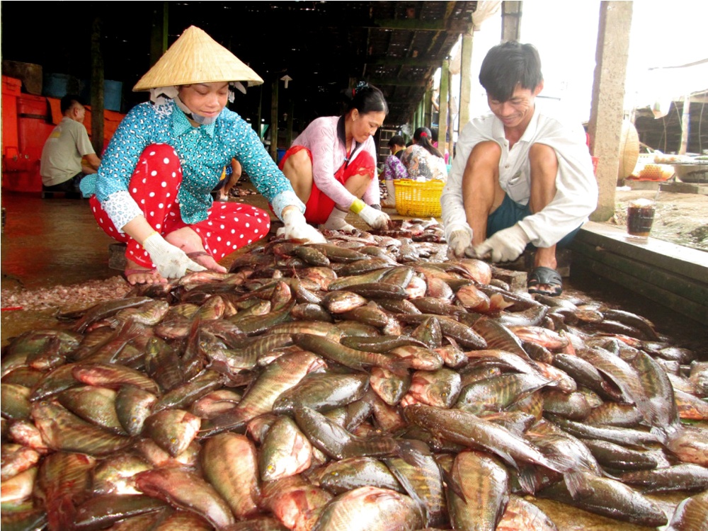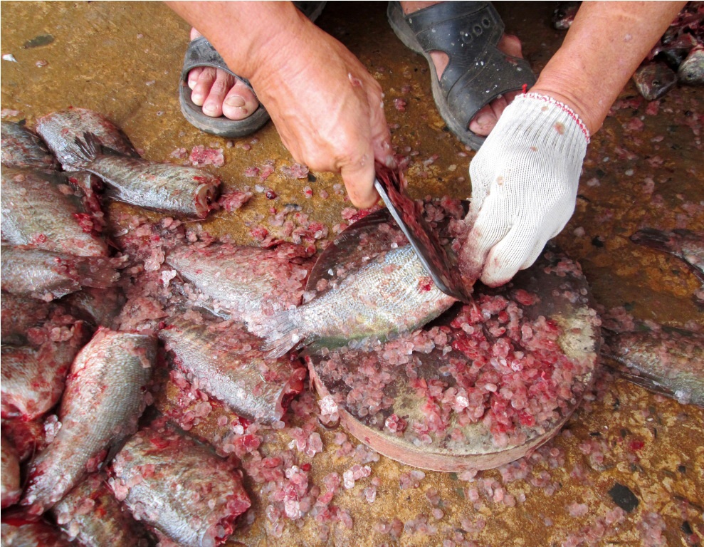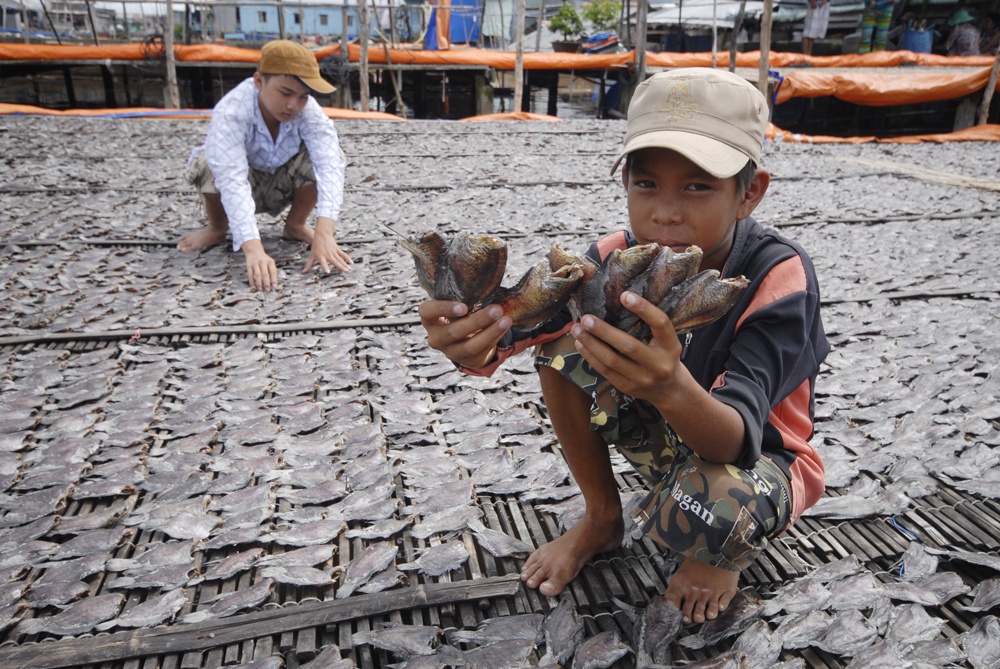 Để cho ra một sản phẩm khô, công nhân phải thực hiện nhiều công đoạn như đánh vẩy, cắt đầu, lấy ruột, trứng…phơi khô. Việc làm cá được chia theo tổ, có thể là cả gia đình hoặc những người quen biết và làm ăn sản phẩm. Mỗi tổ có từ 5 đến 10 người. Mỗi tấn cá thành phẩm lao động được trả công từ 1,1 đến 1,2 triệu đồng. |