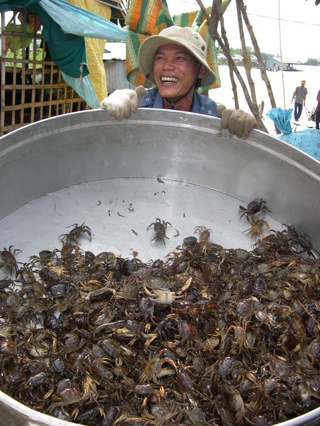 Mùa lũ cũng chính là thời điểm xuất hiện nhiều nhất các chợ mua bán các loại cá, cua, ốc...đồng từ dưới sông đến trên cạn.