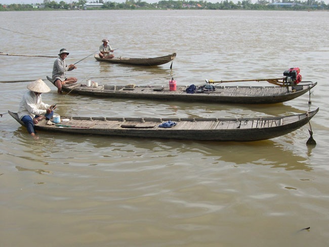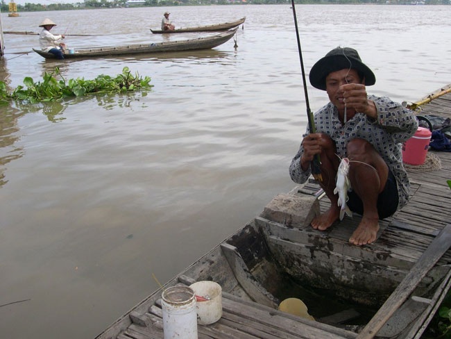 Hàng ngàn hộ gia đình ở đồng bằng Sông Cửu Long có thu nhập ổn định từ lũ. Trong ảnh, anh Tuấn ở xã Đông Bình, huyện Thới Lai, TP. Cần Thơ câu cá lăng, mỗi ngày kiếm đều đặn 3-4kg cá, thu trên dưới 150.000 đồng.