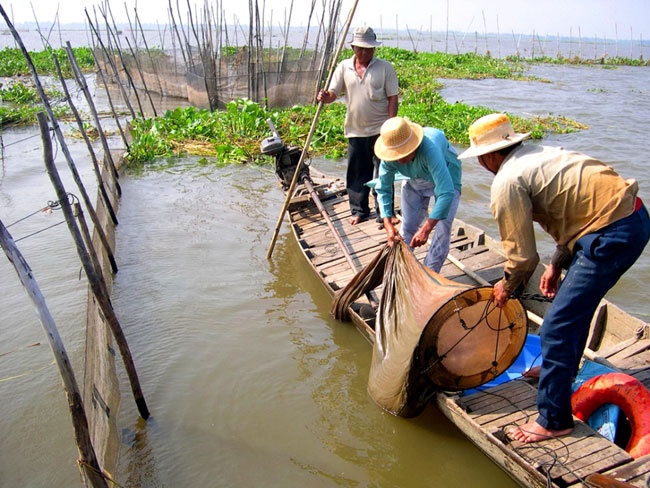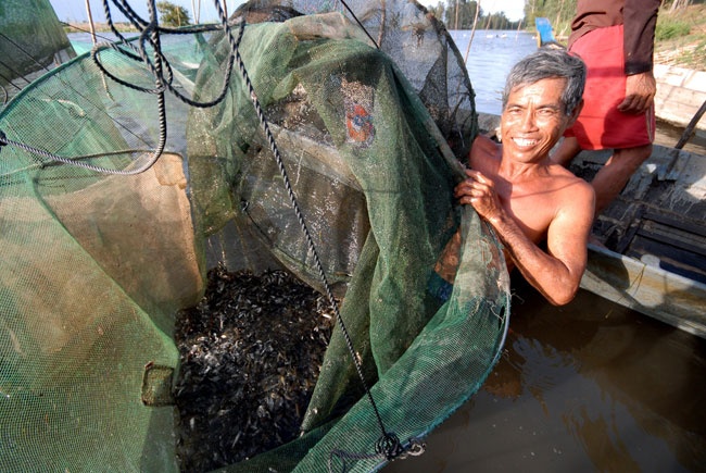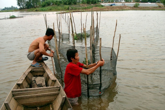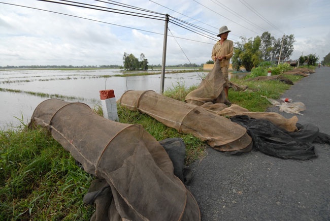 | Gia đình ông Lưu Văn Phước, ở xã Phú Lộc, thị xã Tân Châu – An Giang đặt dớn cá linh trên đồng ruộng. Chỉ có vài mét lưới, không cần mồi, bình quân một ngày cha con ông thu nhập từ 300.000 -500.000 đồng. |
