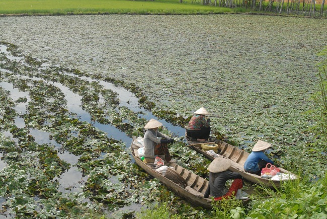 Ngoài nguồn lợi thủy sản, lũ về cũng khiến các loài thủy cầm phát triển rất mạnh, như bông súng, điên điển, củ ấu… giúp dân nghèo có nguồn thu nhập ổn định. Hiện giá một cây bung súng dài 1,5m khoảng 1.000 đồng, giá bông điên điển giao động 30.000 đồng/ kg, còn củ ấu giá 25.000 đồng/ kg...