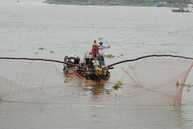Ở huyện Tịnh Biên – An Giang, người dân đánh bắt cá linh trong mùa lũ bằng lưới đáy. Từ trước lũ vài tháng, nhiều gia đình đã dùng hàng ngàn mét lưới để sang vùng giáp biên giới Campuchia thuê đất chặn bắt cá.
