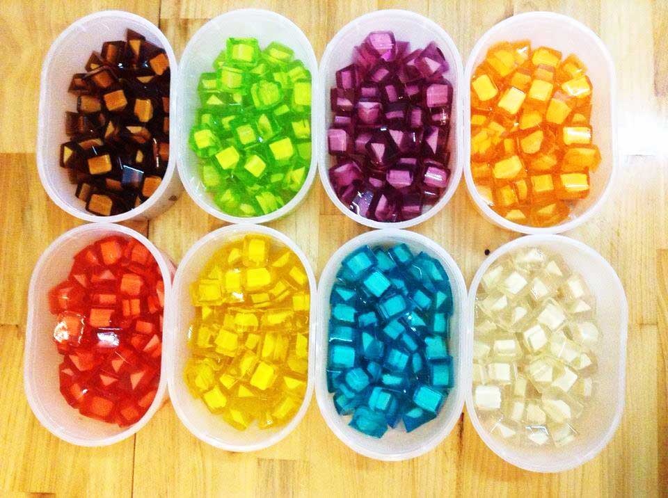 Theo chị Hiền, làm thạch mất nhiều thời gian, khá tỉ mỉ, tốn công. Tuy nhiên, nguyên liệu làm thạch đơn giản, không tốn kém. “Bột thạch sau khi được pha nước, màu theo tỷ lệ vừa phải sẽ được nấu lên, đổ theo khuôn nhân phô mai, đặt vào tủ đông là hoàn thiện. Thông thường, xong một mẻ khoảng 50 – 70 viên thạch, mình mất 45 phút đến 1 tiếng. Mỗi viên phô mai giá 2.500 đồng, mình lời một nửa”, chị Hiền bật mí.