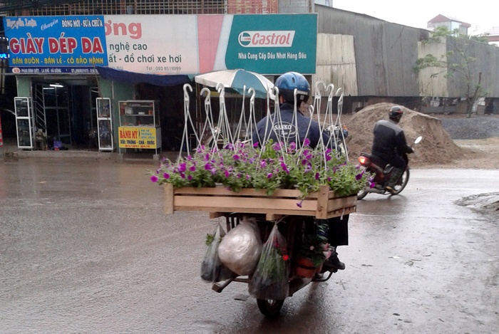 Chị Phùng Thị Trang cũng một thời buôn hoa ở chợ Nhổn nhưng ế ẩm và chuyển sang kinh doanh di động, bằng cách chở hàng đến tận tay khách. Hàng hóa được xếp lên xe đạp, dắt bộ để bán ở khu phố cổ hoặc gần khu vực bờ hồ Gươm. Khách hàng chủ yếu là người có nhu cầu nhưng lại không có thời gian đi mua. “Hơn nữa với hàng hoa, những loại hoa lạ, đẹp thường chỉ bán ở chợ sáng chứ không có ở chợ chiều, nên nhiều khi muốn mua cũng khó. Hay cũng có khi, xe hoa đi qua thấy đẹp khách hàng lại có ngẫu hứng muốn mua”, chị Trang nói về lý do nhiều người thích mua hoa bán rong.
