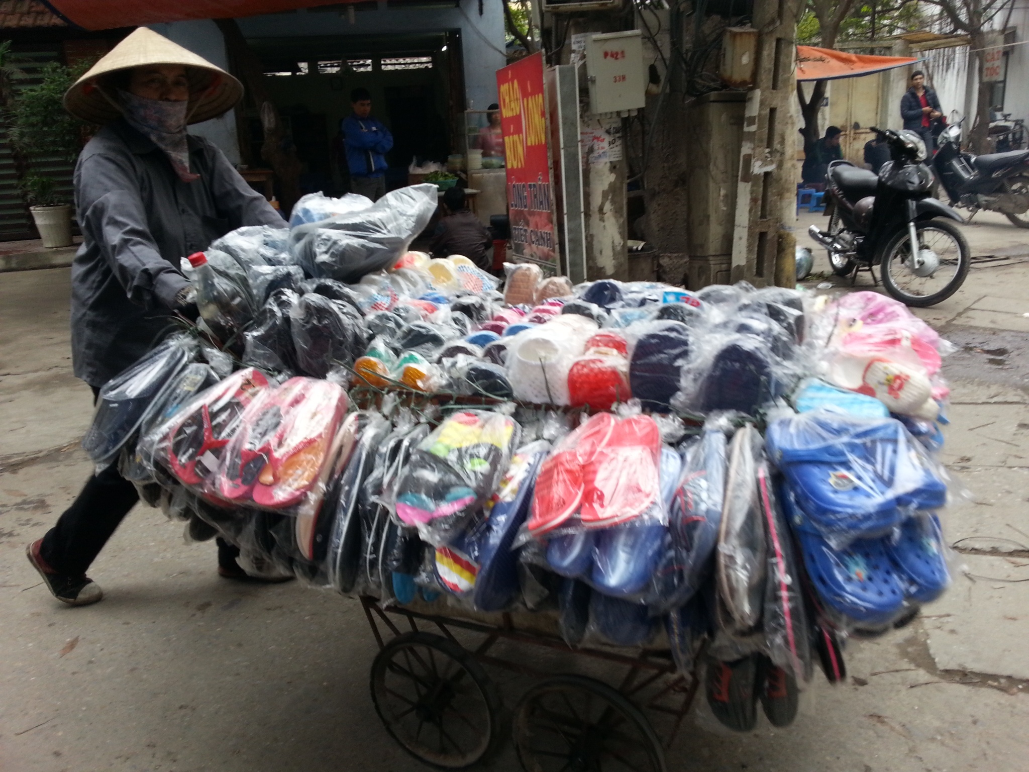 | Mang hàng đến tận tay khách là cách những người bán rong cạnh tranh với các cửa hàng lớn. |