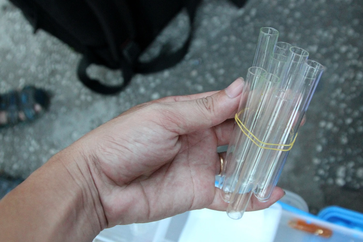 | "Lọ" thực tế là những ống nghiệm thủy tinh.
