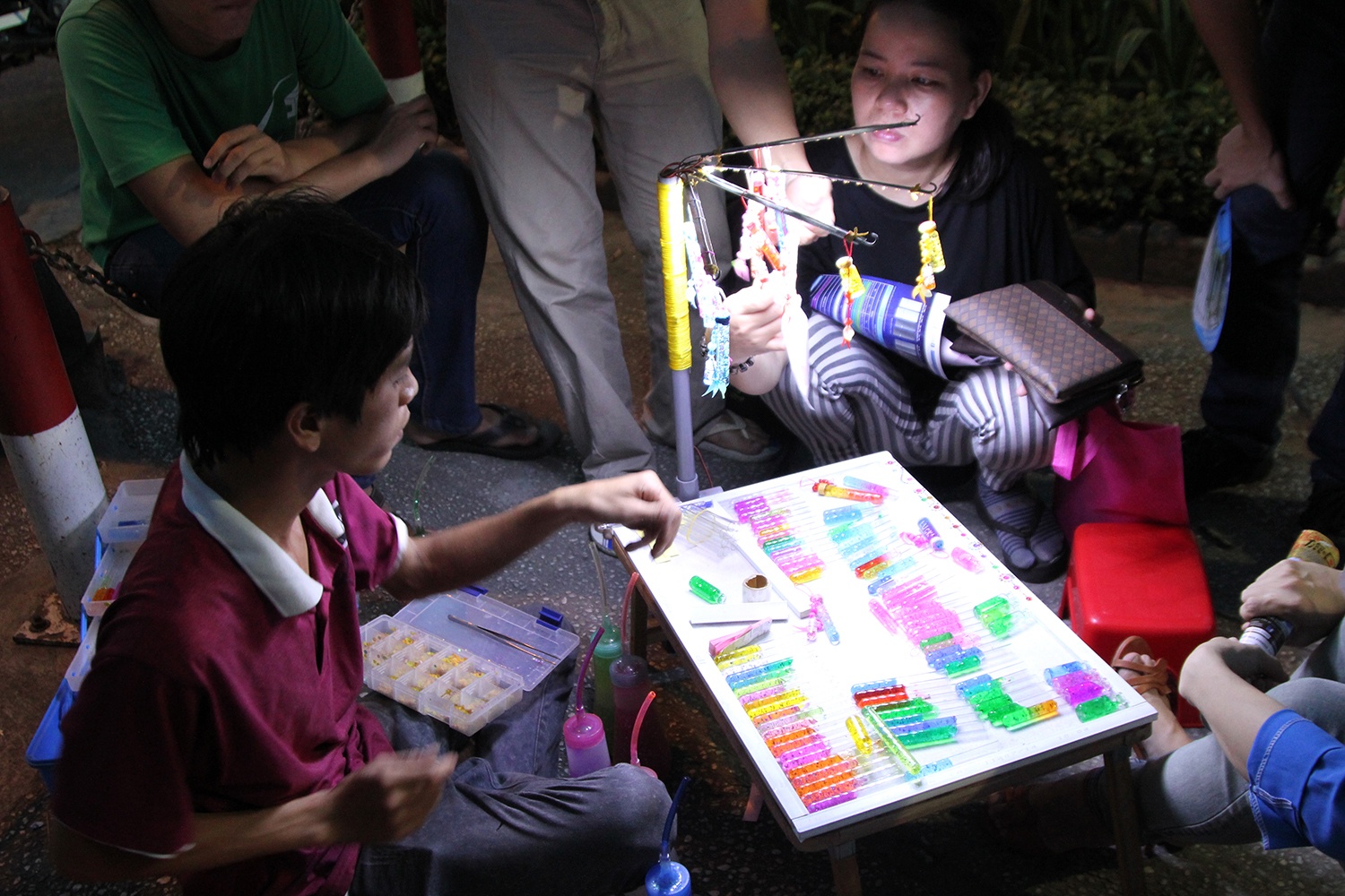 | Dịch vụ khắc tên vào lọ của một nhóm bạn trẻ tại TP.HCM đang hút khách từ người lớn đến trẻ em. Không có cửa hàng cố định, nhóm bày dụng cụ, sản phẩm ra làm, bán luôn ở các công viên, các hội chợ trong thành phố. Việc khắc chữ vào lọ được thực hiện ngay tại chỗ để khách hàng có thể xem và nhận liền sản phẩm của mình. |