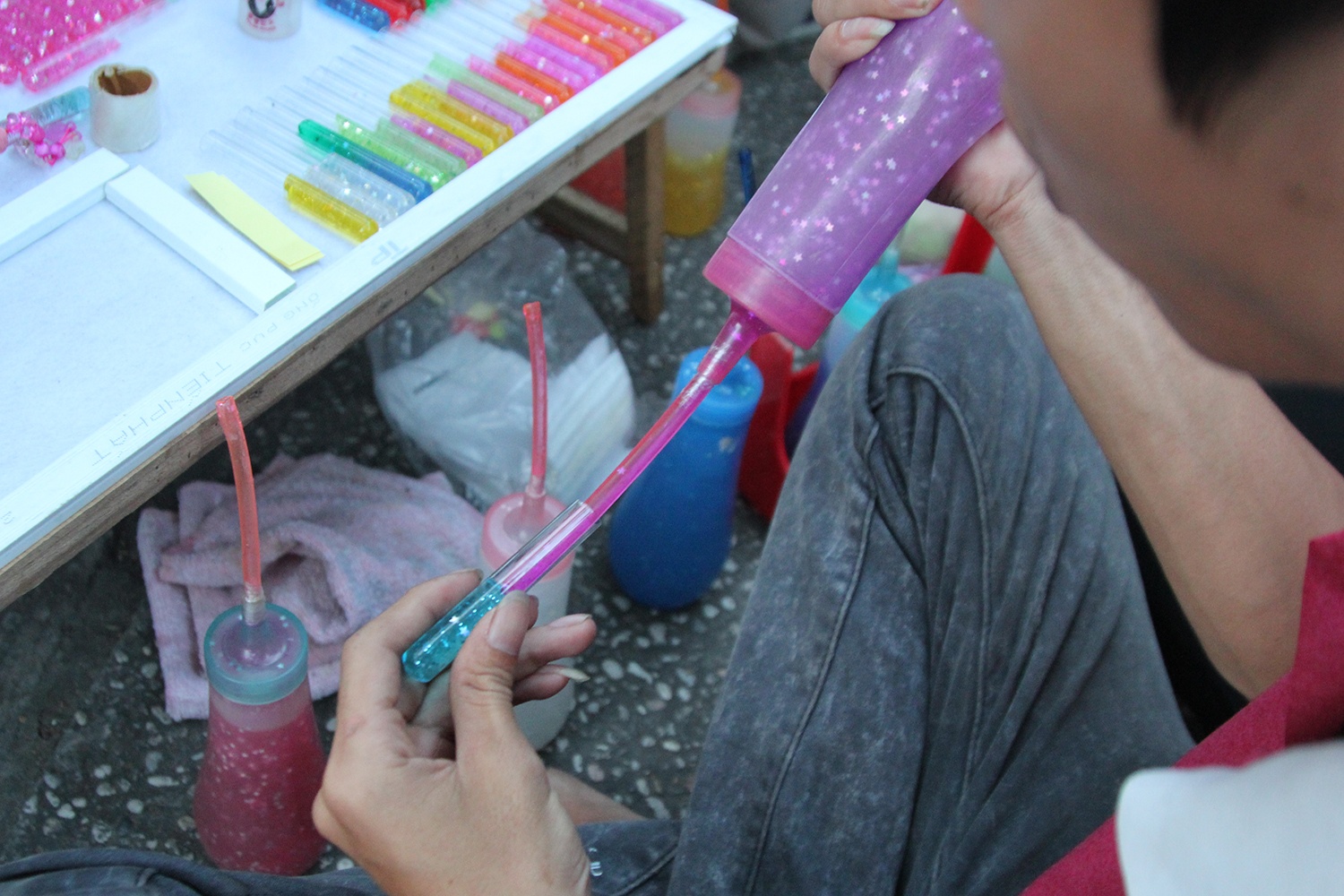 | Trước khi khắc chữ vào bên trong, những ống nghiệm sẽ được đổ đầy một chất lỏng có nhiều màu sắc khác nhau. |