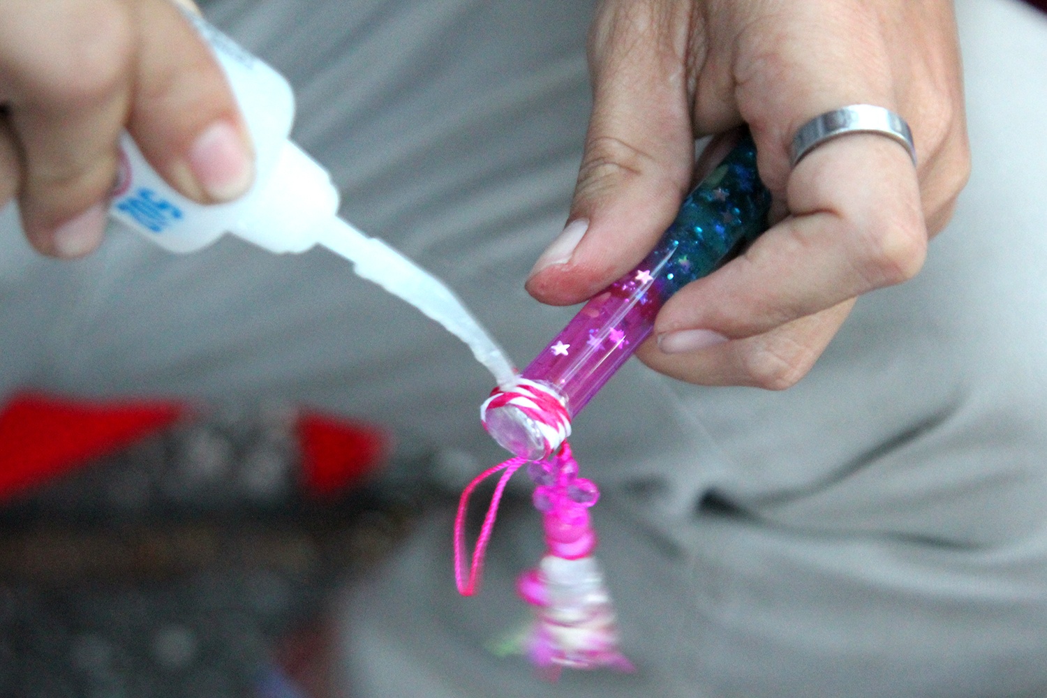 | Keo dán được dùng cố định đầu ống nghiệm để chất lỏng không chảy ra ngoài. Mọi công đoạn đều được thực hiện tỉ mỉ bằng tay. |