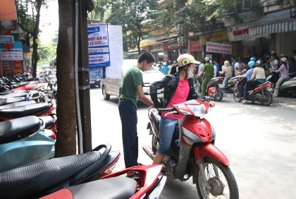 Mọi ngõ ngách, từ tiệm cắt tóc gội đầu, tiệm bán quần áo, hiệu ảnh...đều được tận dụng biến thành các bãi trông xe tự phát. Chỉ cần ít vé xe tự ghi và tấm biển nhận trông xe, mỗi ngày có thể kiếm một vài triệu từ mỗi điểm trông xe.