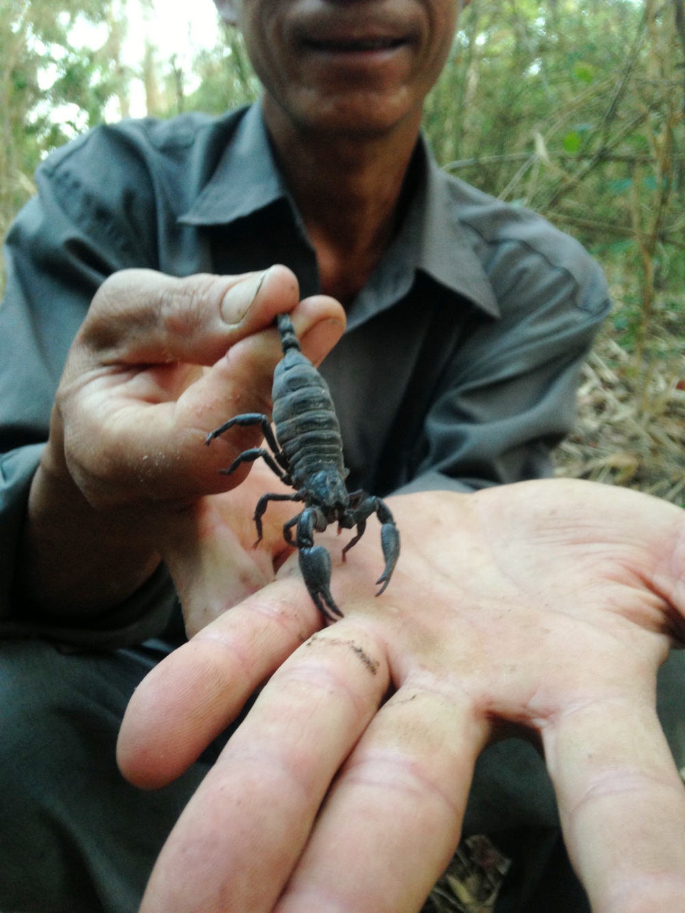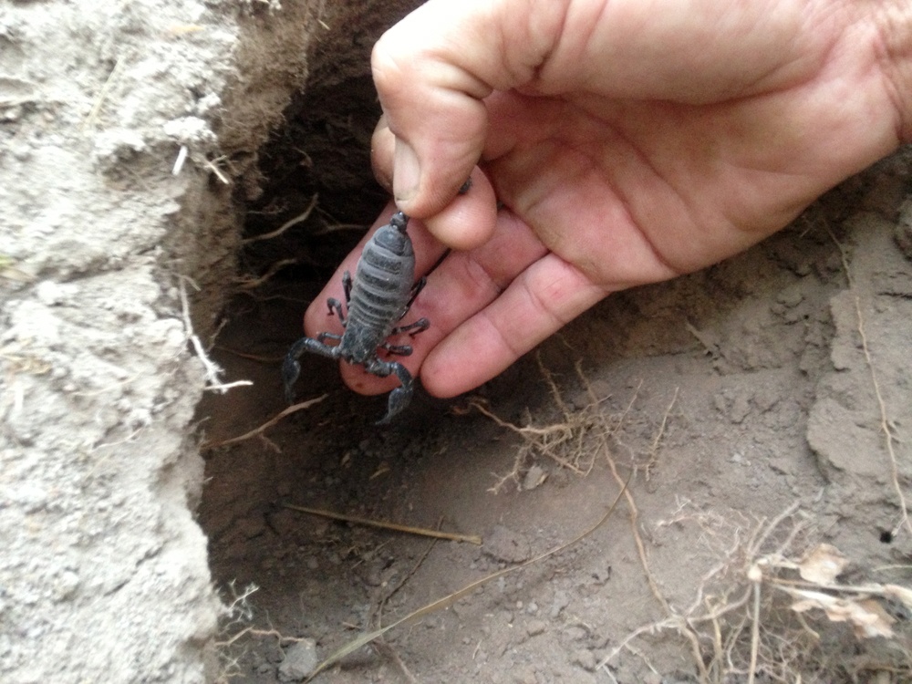 “Thường, một hang có khoảng 2 con (đực và cái), có hang đến 6-7 con trú ngụ. Bò cạp lạ kỳ lắm, ban đêm nó rất nhanh và dữ, nhưng ban ngày thì nằm một chỗ ít cắn ai. Muốn bắt bò cạp, cứ đè đuôi chúng xuống thì không bị cắn”, anh Cương giải thích.