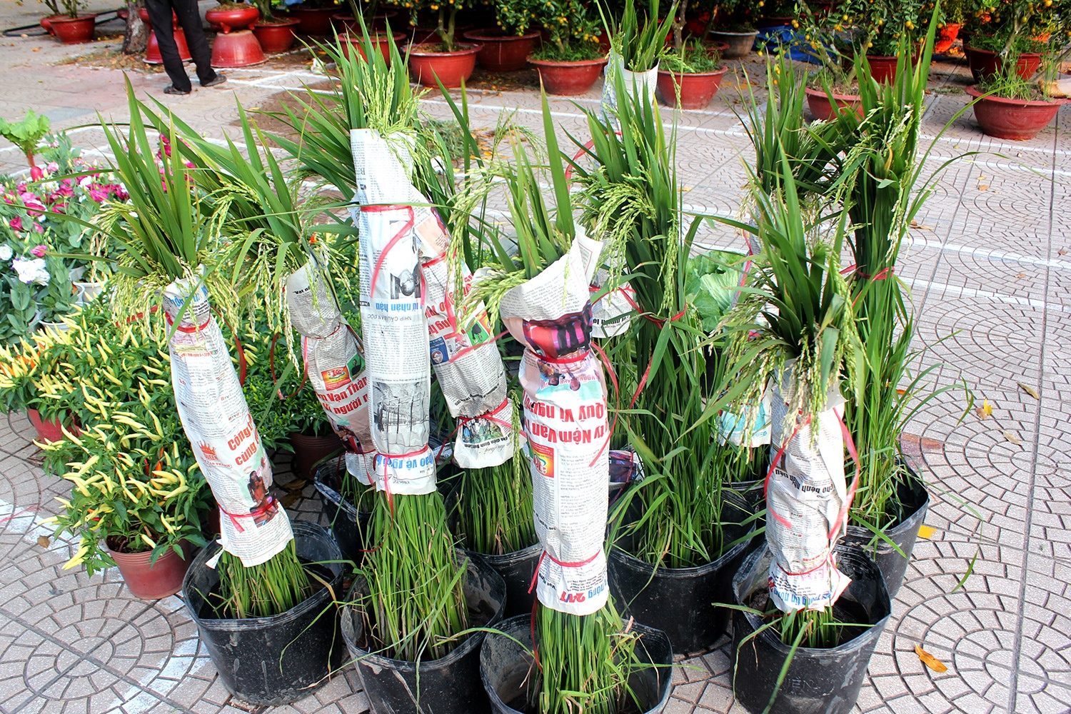 | Nhiều loại kiểng nông sản như bắp cải, lúa, ớt... cũng được mang đến các chợ hoa. |