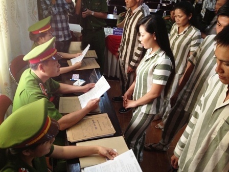 | Những phạm nhân nhận quyết định đặc xá đầu tiên ở trại giam Thủ Đức. |