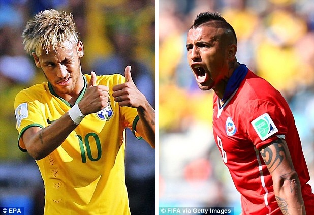| Neymar (trái) và Arturo Vidal (phải) cũng sở hữu những kiểu tóc lạ mắt, độc đáo. |