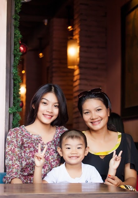 Diễn viên Kiều Trinh chuyên trị những vai sexy bạo liệt không còn sở hữu vẻ nóng bỏng ngày nào. Thậm chí trông chị còn chững hơn so nhiều người cùng tuổi 38. Đến buổi gặp phỏng vấn cùng con trai, Kiều Trinh giải thích: “Tôi đi đâu, làm gì cũng “kè kè” hai con vì không nỡ để các cháu ở nhà. Hôm nay là ngoại lệ vì tôi không muốn con gái Thanh Tú lại phải nghe những chuyện đầy nước mắt của cuộc đời mẹ. Với các con, tôi mong đem lại những chuyện vui để cả ba mẹ con có động lực tiếp tục cuộc sống”.