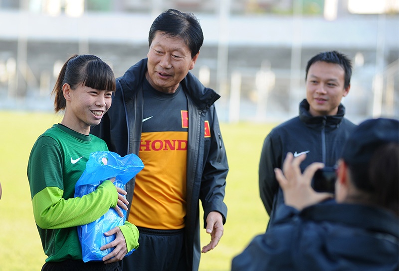 Sau buổi tập cuối cùng trước trận chung kết với Thái Lan chiều qua, HLV Trần Vân Phát khiến Kiều Trinh và toàn đội phải bất ngờ. Vị HLV người Trung Quốc chuẩn bị sẵn một món quà nhỏ và dành tặng Kiều Trinh ngay sau khi buổi tập kết thúc.