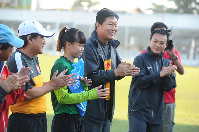 Xúc động trước món quà bất ngờ của người thầy, Kiều Trinh tỏ rõ quyết tâm thi đấu: “Xin cảm ơn HLV, chắc chắn trong trận chung kết, chúng ta sẽ đá một trận tưng bừng với Thái Lan”.