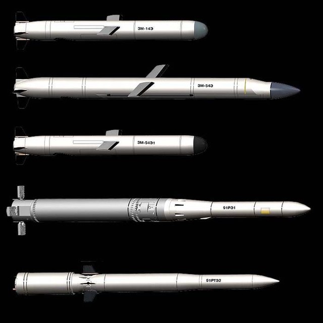 - Tên lửa hành trình đối đất 3M-14E dài 6,2 m, lắp đầu đạn nặng 400 kg, tầm bắn 275 km.