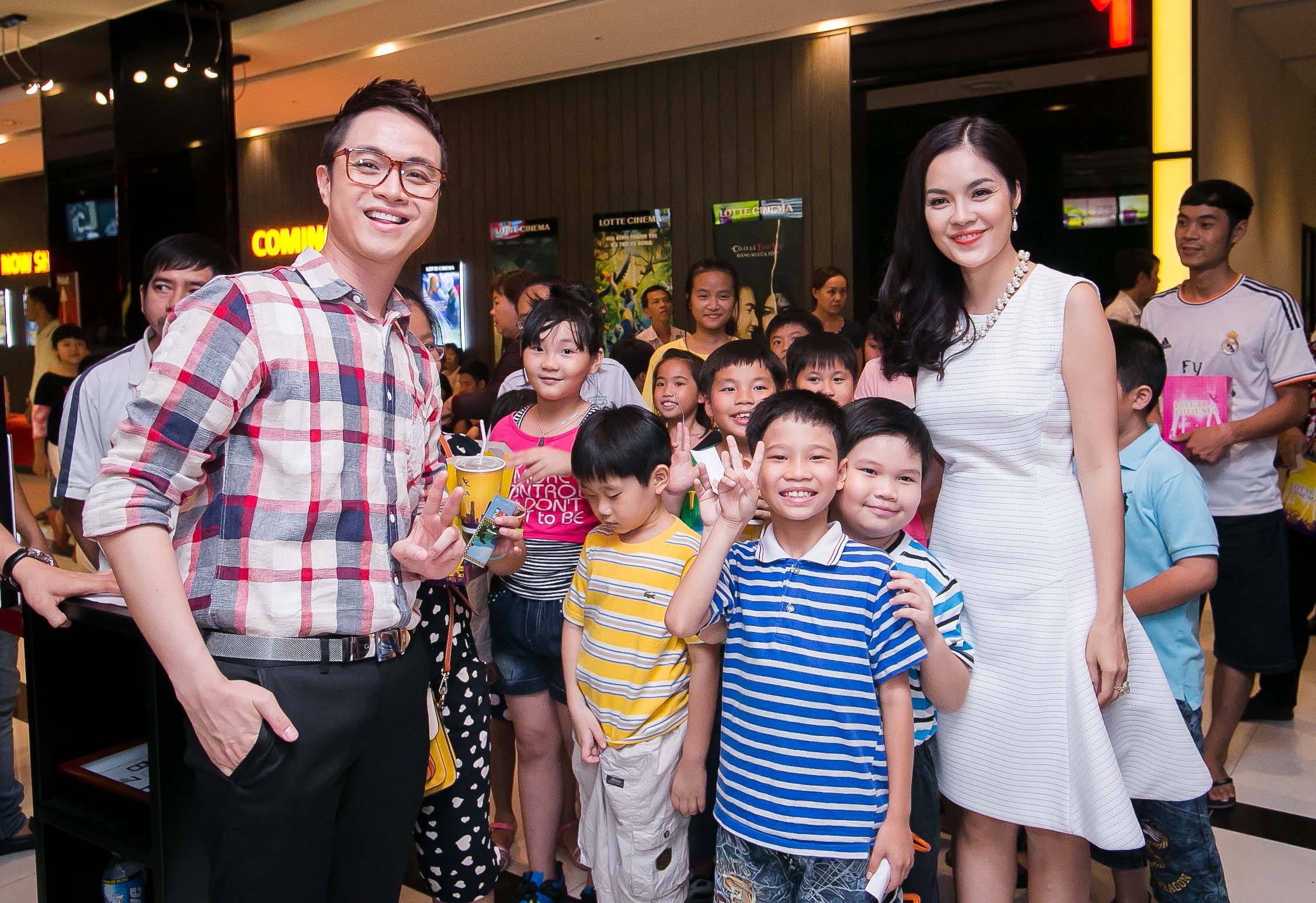 MC Anh Quân cũng đến ủng hộ buổi chiếu phim Cuộc chiến với chằn tinh. Anh ăn vận bảnh bao với ghi - lê và áo thun hiện đại.