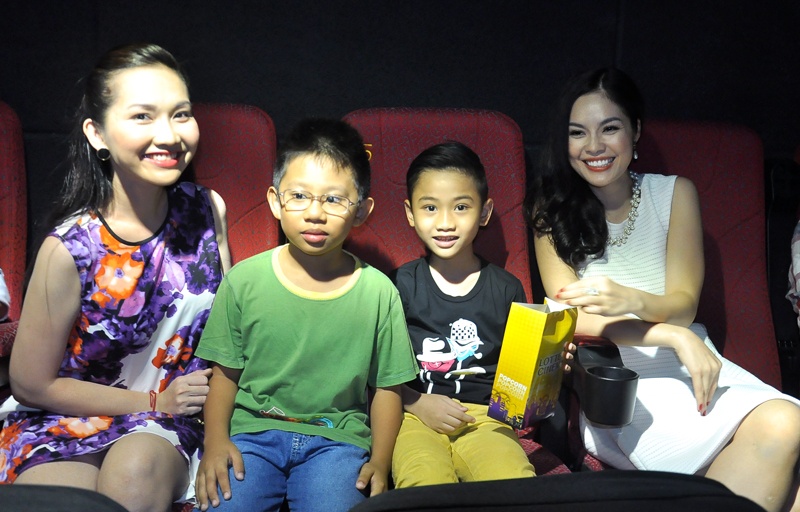 Gia đình nhỏ của nữ diễn viên ''Cưới chạy'' vui vẻ và hạnh phúc khi cùng nhau đến rạp xem phim "Thạch Sanh", thư giãn ngày cuối tuần.