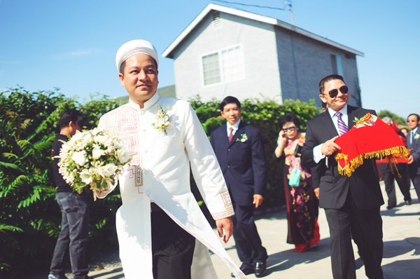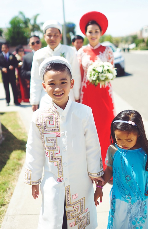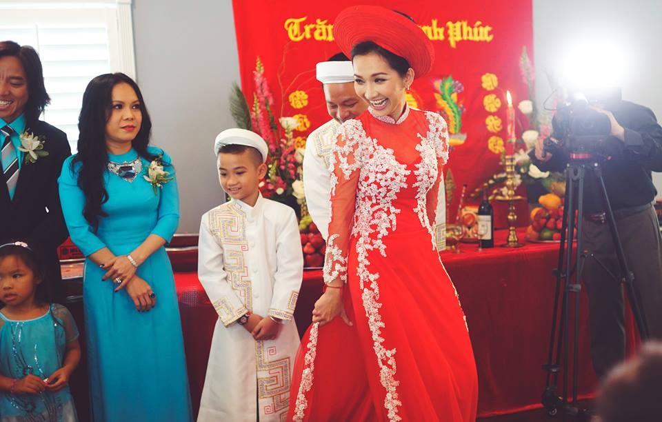 Nữ diễn viên ''Cưới chạy'' diện áo dài truyền thống trong lễ đón dâu vừa được tổ chức tại Mỹ cách đây vài giờ.