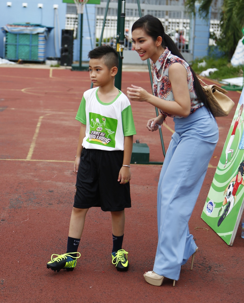 Hai mẹ con nữ diễn viên phim "Hương phù sa" đã có những giờ phút vui vẻ trên sân bóng trước khi lên đường sang Mỹ chuẩn bị cho đám cưới.