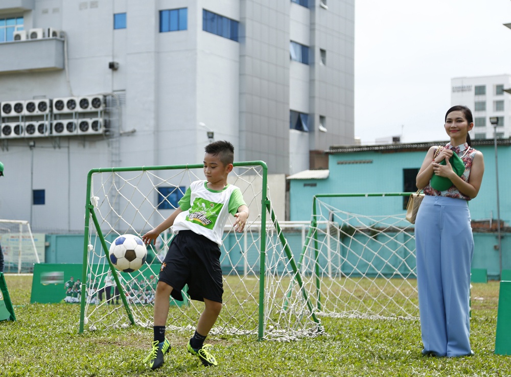 | Sonic tỏ ra rất năng động trên sân bóng. Tâm sự về con, Kim Hiền cho biết cô cảm thấy rất may mắn khi được "trời phú" cho một cậu con trai vừa ngoan ngoãn lại hiểu chuyện và rất yêu thương cô. |