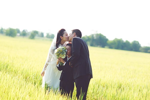 | Kim Hiền và ông xã Andy quyết định thực hiện bộ ảnh cưới gần gũi với thôn quê và thiên nhiên. |