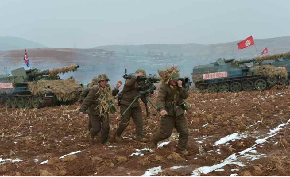 Hãng thông tấn Triều Tiên KCNA hôm 27/1 tăng tải hình ảnh nhà lãnh đạo Kim Jong Un trực tiếp chỉ đạo cuộc diễn tập vượt sông tại khu vực biên giới phía tây.