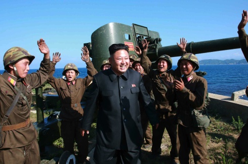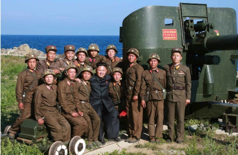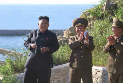Nhà lãnh đạo trẻ tuổi tỏ ra khá hài lòng khi các binh sĩ Triều Tiên đã bắn trúng mục tiêu nằm trên một hòn đảo khác. |