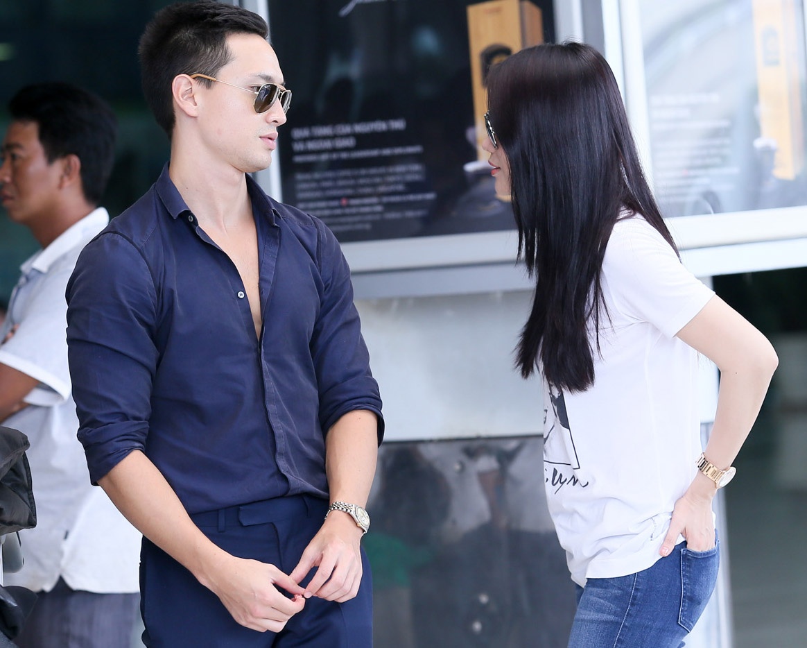 | Sau khi kết thúc tour diễn tại Đà Nẵng, ngày 30/11, Hương Ga và Tùng Hero có mặt tại sân bay Tân Sơn Nhất, TP.HCM. Kim Lý đẩy xe hành lý, trong khi bà mẹ một con Trương Ngọc Ánh một mình đi trước. |