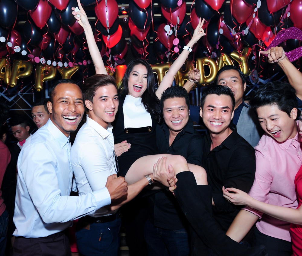 | Sau khi xuất hiện trên sóng trực tiếp trong vai trò giám khảo cuộc thi Hoa khôi áo dài Việt Nam - Đường tới vương miện Hoa hậu Thế giới, Trương Ngọc Ánh được nam diễn viên Kim Lý tháp tùng đến bar để tổ chức sinh nhật cùng bạn bè. |