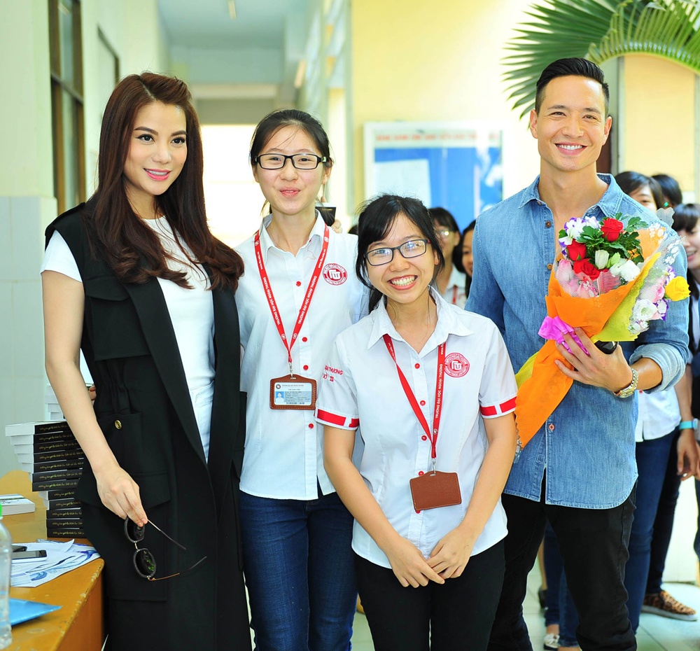 | Ngày 9/4, Trương Ngọc Ánh và Kim Lý có buổi giao lưu sinh viên trường đại học Ngoại Thương TP HCM. Cặp đôi giúp các bạn trẻ ngành marketing - truyền thông có cái nhìn toàn diện hơn về truyền thông trong lĩnh vực giải trí. |