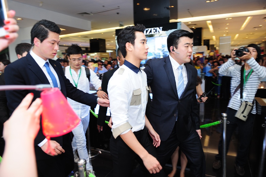 | Rất đông người hâm mộ chờ đón anh chàng tại trung tâm thương mại. |