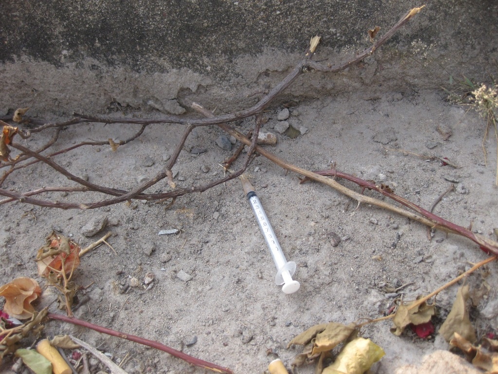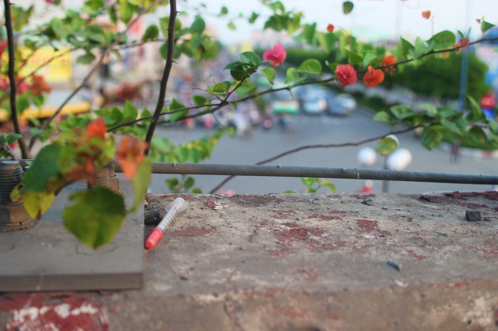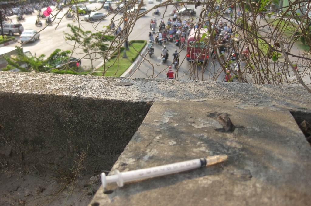 | Sau mỗi lần con nghiện chích xong, ống kim tiêm thường nằm lại trên đại lộ nghìn tỷ này. |