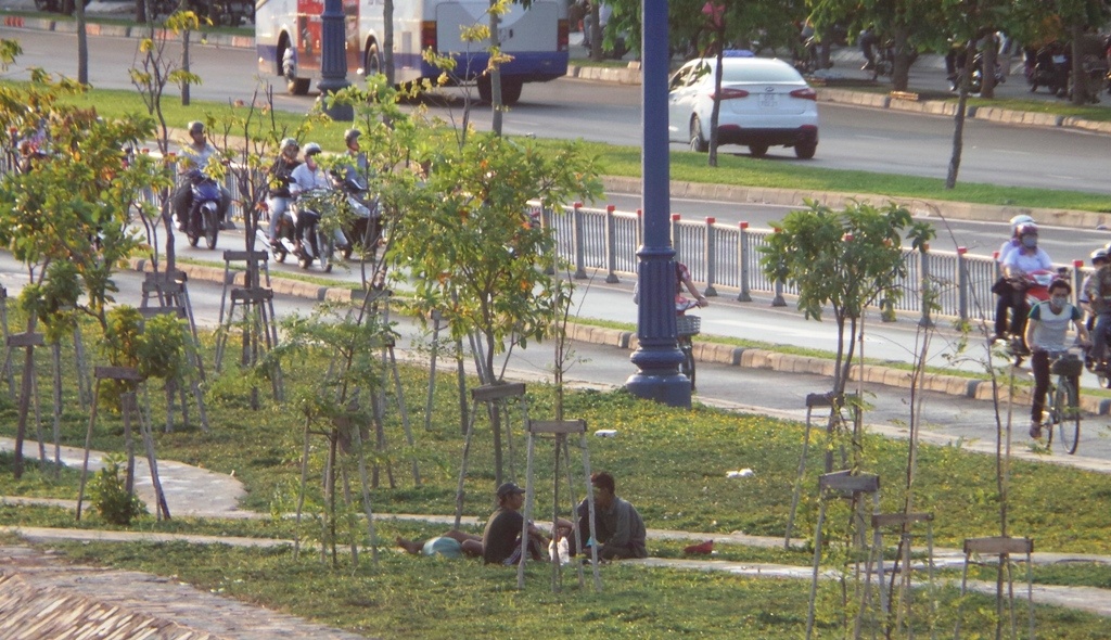 | Một "bãi đáp" khác được các con nghiện chọn là công viên Hòa Bình (nằm giữa đường Nguyễn Chí Thanh - Hùng Vương - Sư Vạn Hạnh, giáp ranh quận 5 và quận 10). Ở đây "hội tụ" con nghiện, người vô gia cư và gái mại dâm. Là công viên nhưng ít người dân nào dám tới đây đi dạo. |
