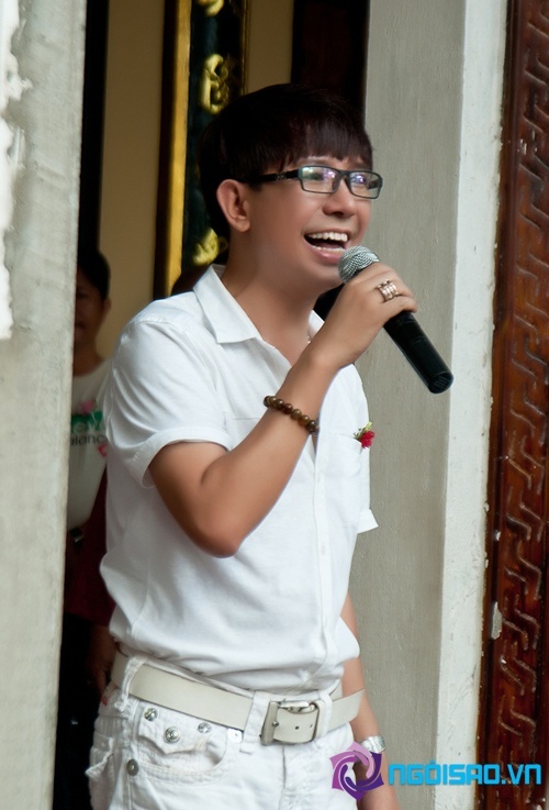 Hình ảnh "chuẩn men" của Long Nhật trong buổi từ thiện.