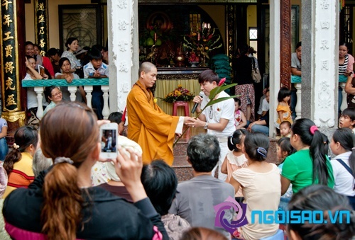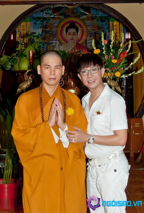 Long Nhật chụp hình lưu niệm cùng sư trụ trì chùa Pháp Liên.