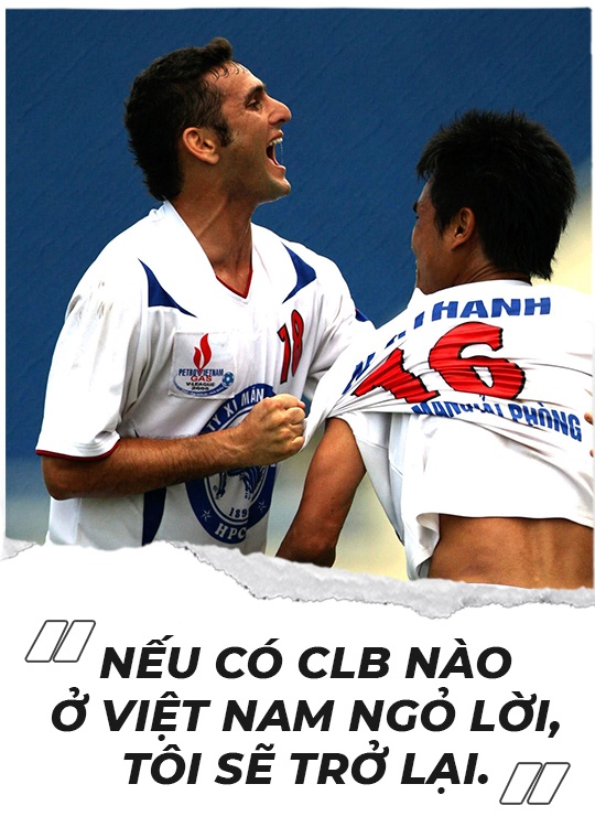 Tôi nghĩ mình vẫn đủ sức để chơi bóng ở Việt Nam và chắc chắn 100% về điều đó. Nếu có CLB nào ở Việt Nam ngỏ lời, tôi sẽ trở lại, nhất là Hải Phòng. Tuổi tác (37 tuổi - PV) không phải vấn đề đâu. Tôi có kinh nghiệm và tôi biết mình vẫn có thể chơi bóng ở đẳng cấp cao như ngày xưa.