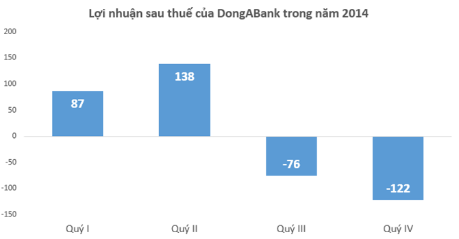 | Biểu đồ lợi nhuận sau thuế DongA Bank năm 2014. Ảnh: Bizlive. |