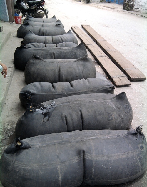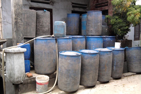Một xô vục xuống thùng múc lên được khoảng chục lít. Một chiếc túi săm ôtô, nếu “no căng”, có thể chứa được từ 10-15 xô, tương đương với 100 lít.