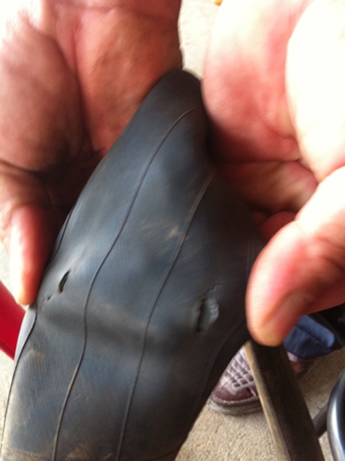 | Cán phải đinh kiểu này là không thể vá ruột, phải thay mới, tốn tiền gấp nhiều lần. |