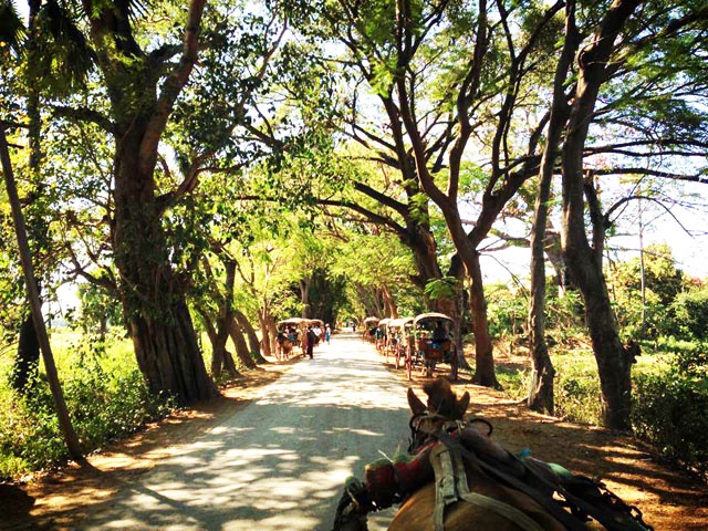 Ở Bagan, bạn nên dành ít nhất 2 ngày, trong đó một ngày thuê xe ngựa đi quanh các con đường tuyệt đẹp ở Old Bagan, từ sáng đến chiều tối khoảng 30 USD. Ngày thứ 2 thì nên thuê xe đạp giá 5 USD/chiếc đi sang khu New Bagan và ngắm hoàng hôn. Tối đi xe buýt sang Mandalay hoặc thẳng tới tỉnh Shan. Vé xe buýt từ Bagan đến Mandalay là 7,5 USD/khách.