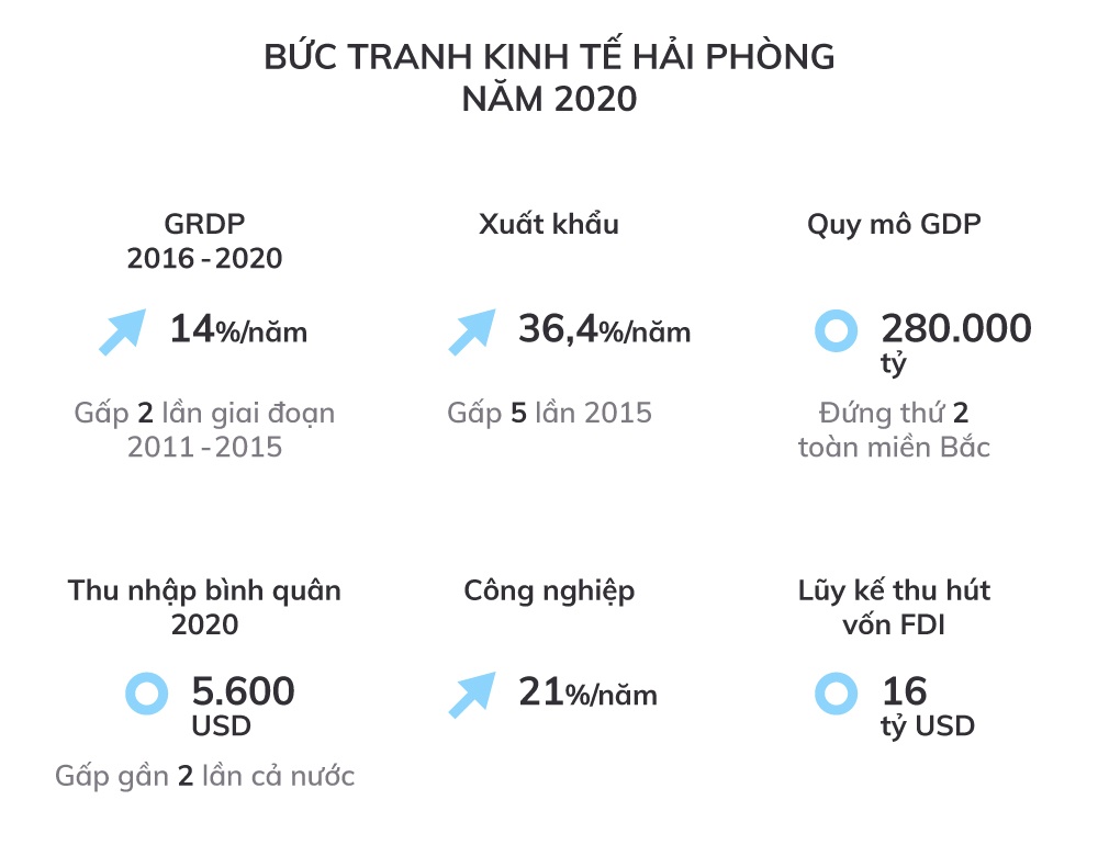 Nhờ những bước chuyển về cả hạ tầng và thu hút đầu tư, giai đoạn 2016-2020, Hải Phòng đã có những bước tiến dài trong phát triển kinh tế - xã hội. GRDP bình quân 5 năm 2016- 2020 tăng 13,94%/năm, gấp 1,3 lần mục tiêu, gấp 2 lần giai đoạn trước.