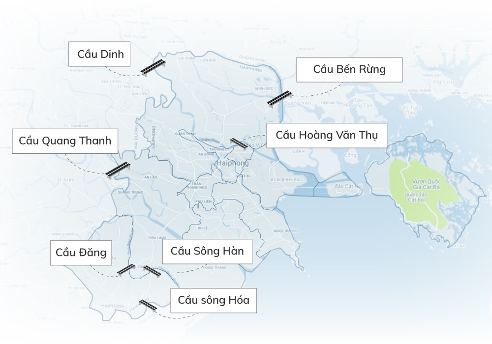 Đó là cầu sông Hàn nối Tiên Lãng với Vĩnh Bảo; cầu sông Hóa kết nối huyện Vĩnh Bảo với huyện Thái Thụy; cầu Quang Thanh nối huyện An Lão với huyện Thanh Hà (tỉnh Hải Dương), qua sông Văn Úc; cầu Dinh nối huyện Thủy Nguyên (Hải Phòng) với thị xã Kinh Môn (tỉnh Hải Dương) qua sông Kinh Thầy…